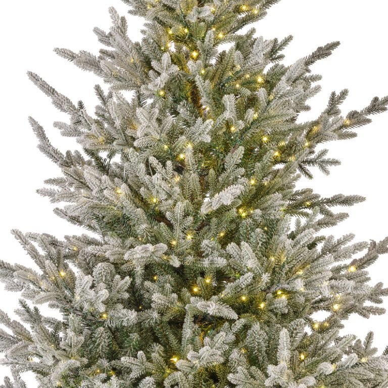 Beautiful Design: With 900 warm white micro LED lights and 4,275 branch tips, the Norway Snowy Spruce provides a full and lush appearance that captures the essence of a real snowy spruce.